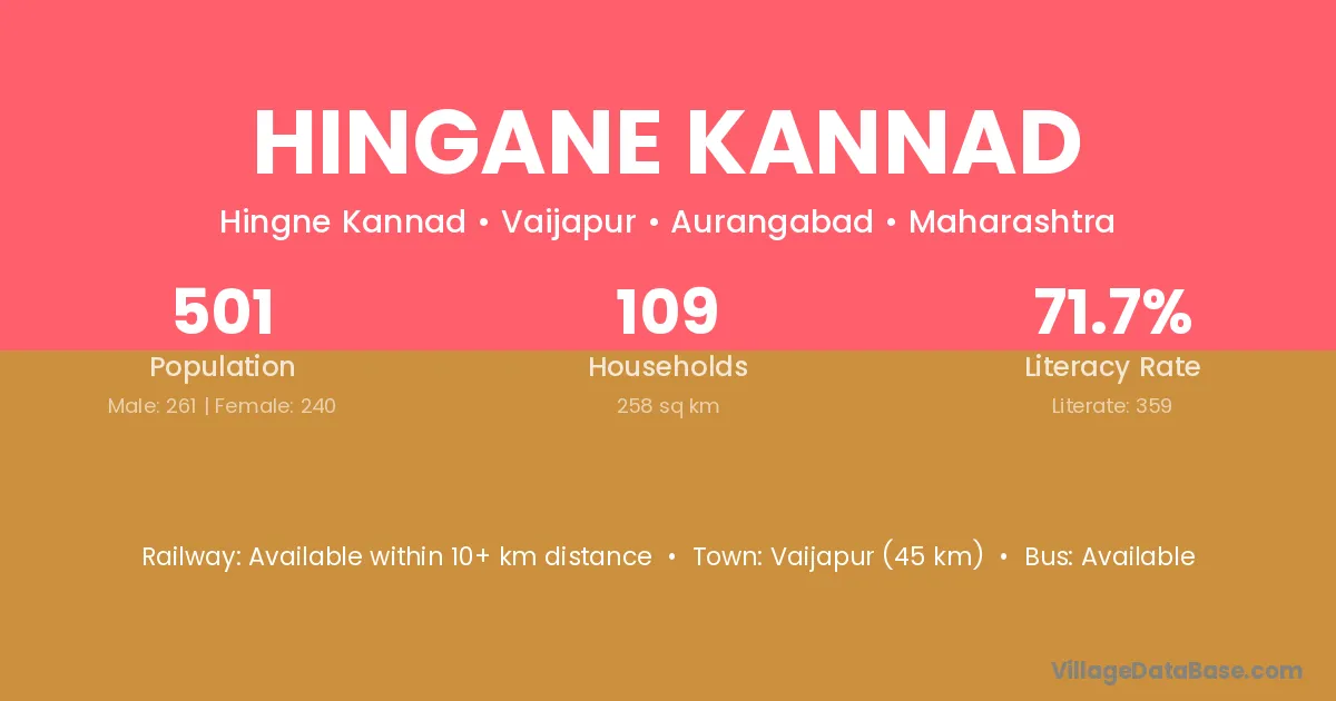 Hingane Kannad village has a total population of 501 people, of which 261 are males and 240 are females.