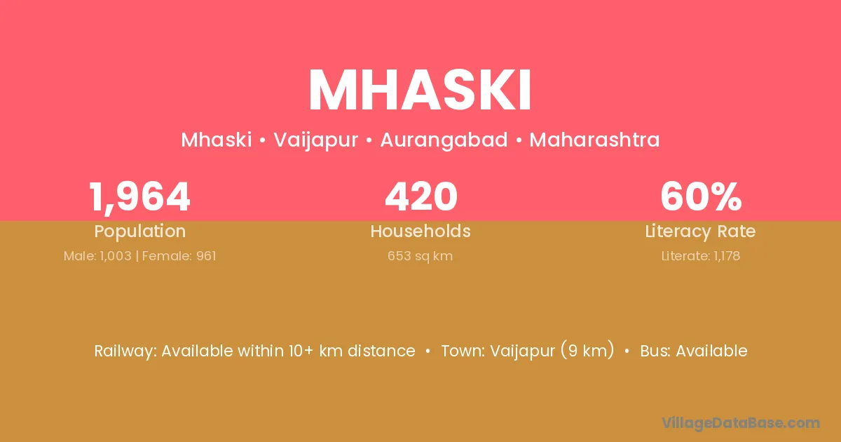 Vaijapur (9 km) is the nearest town to Mhaski village for major economic activities and is located approximately 9 km away.