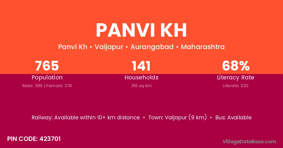 Vaijapur (9 km) is the nearest town to Panvi Kh village for major economic activities and is located approximately 9 km away.