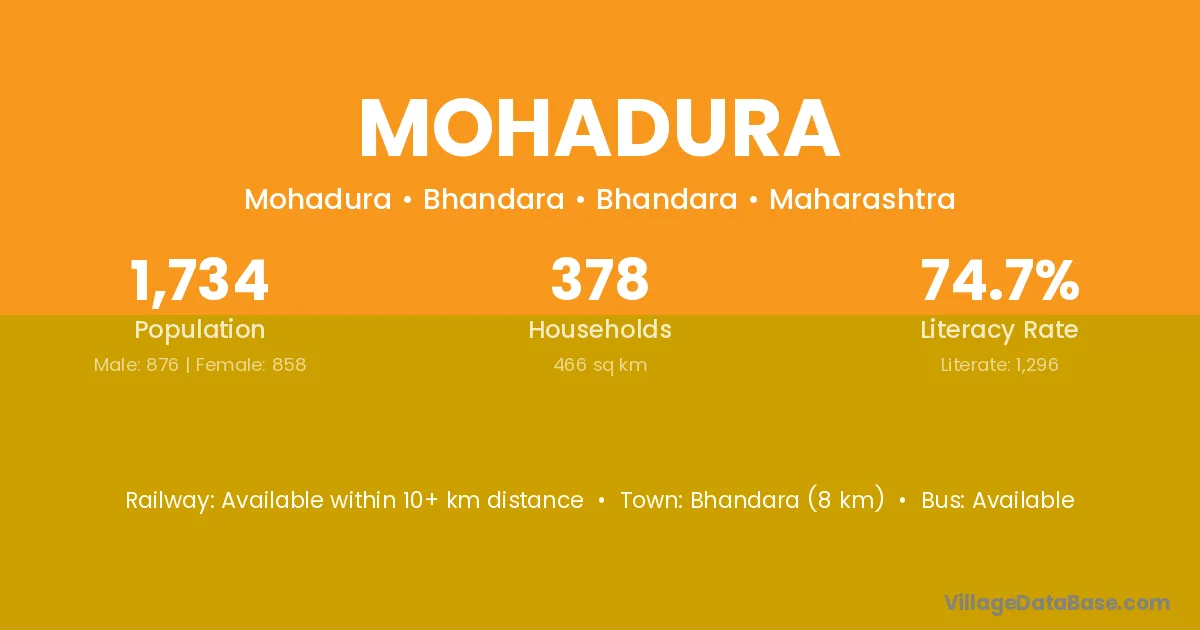 Bhandara (8 km) is the nearest town to Mohadura village for major economic activities and is located approximately 8 km away.