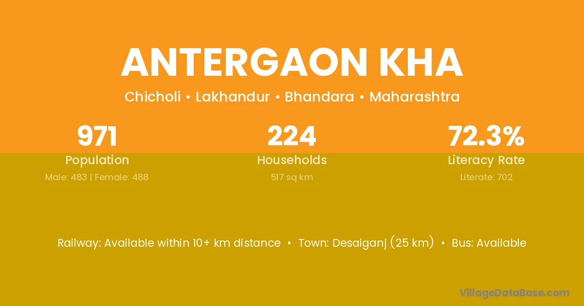 Antergaon Kha village has a total population of 971 people, of which 483 are males and 488 are females.