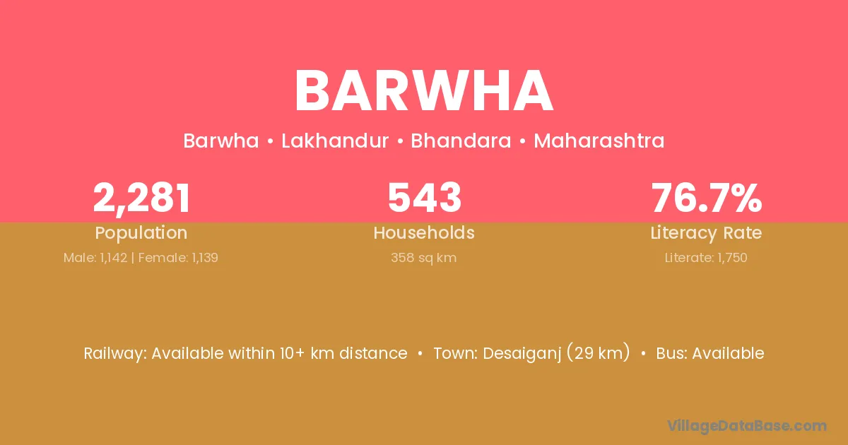 Desaiganj (29 km) is the nearest town to Barwha village for major economic activities and is located approximately 29 km away.
