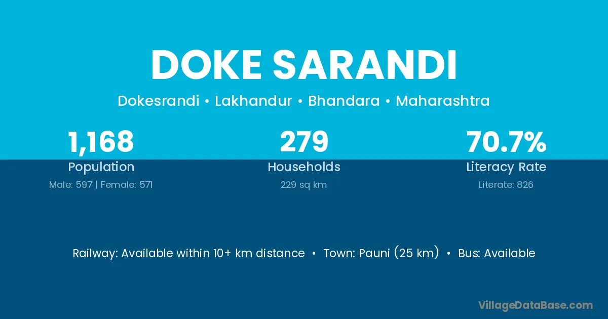 Pauni (25 km) is the nearest town to Doke Sarandi village for major economic activities and is located approximately 25 km away.