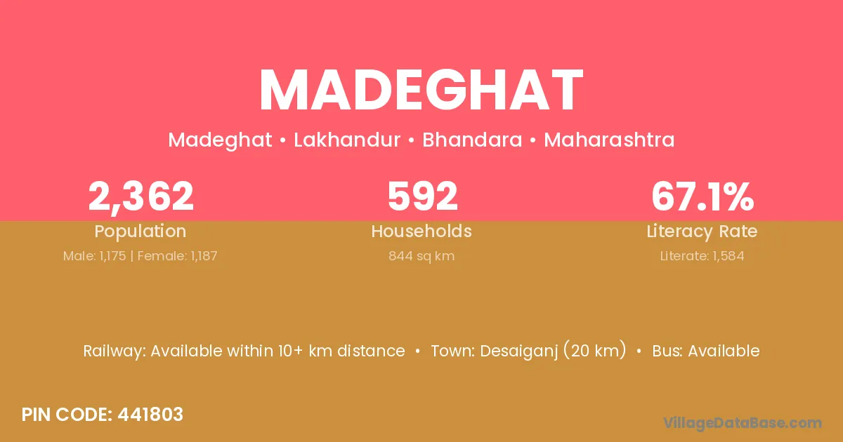 According to Census 2011 information, the village code of Madeghat village is 441803.