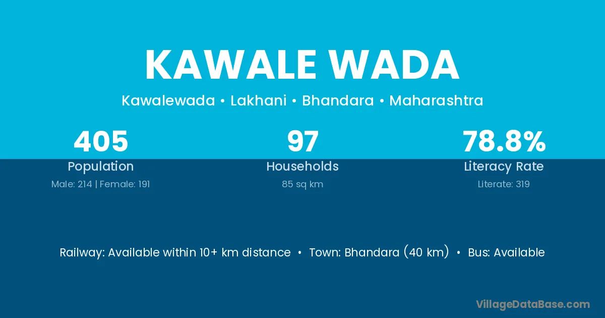 Bhandara (40 km) is the nearest town to Kawale Wada village for major economic activities and is located approximately 40 km away.