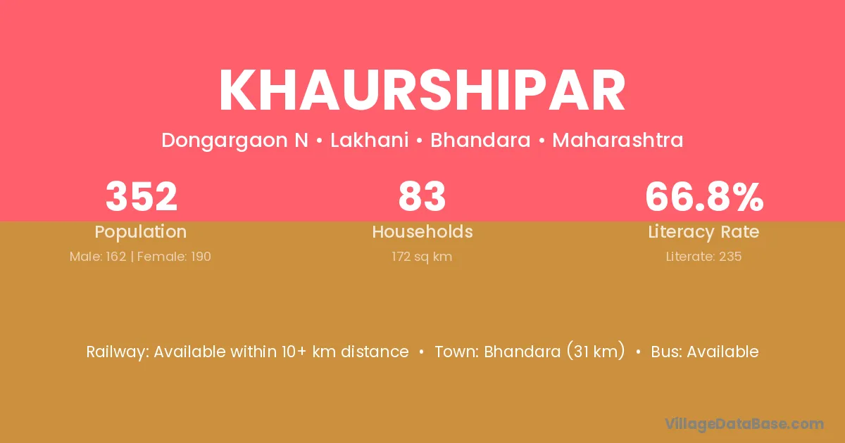 Bhandara (31 km) is the nearest town to Khaurshipar village for major economic activities and is located approximately 31 km away.