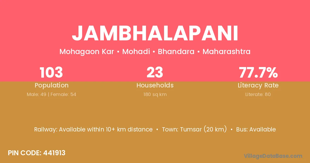 Tumsar (20 km) is the nearest town to Jambhalapani village for major economic activities and is located approximately 20 km away.