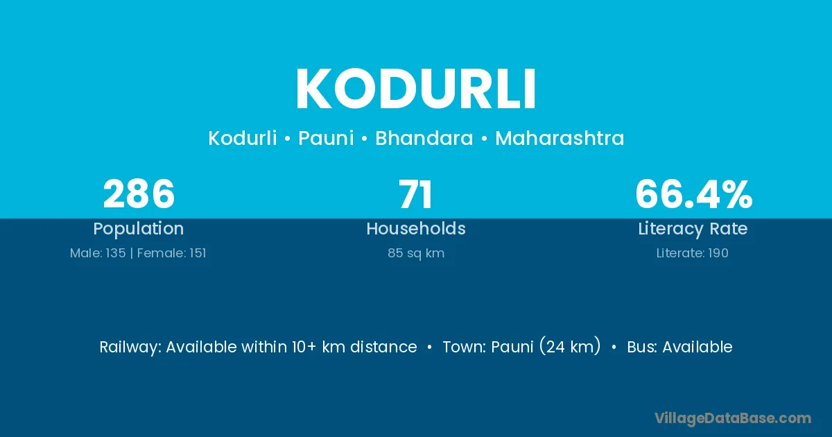 Pauni (24 km) is the nearest town to Kodurli village for major economic activities and is located approximately 24 km away.