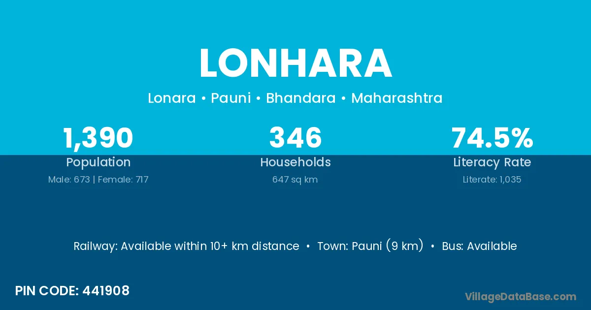 Pauni (9 km) is the nearest town to Lonhara village for major economic activities and is located approximately 9 km away.