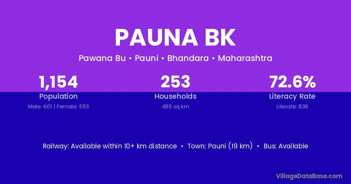 Pauni (19 km) is the nearest town to Pauna Bk village for major economic activities and is located approximately 19 km away.