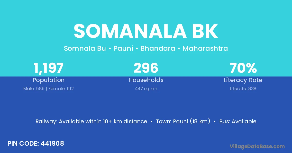 Pauni (18 km) is the nearest town to Somanala Bk village for major economic activities and is located approximately 18 km away.