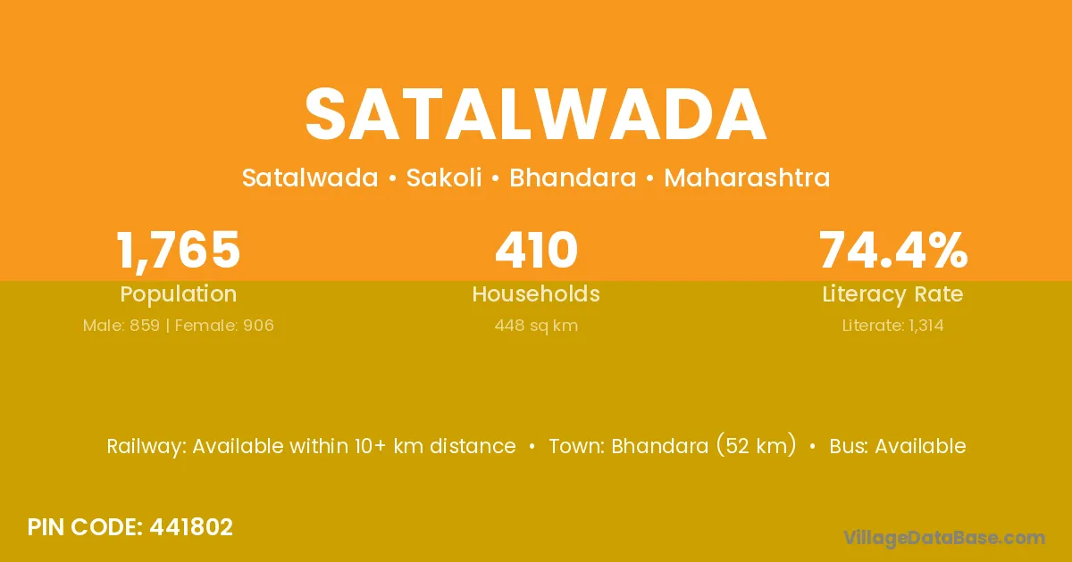 Bhandara (52 km) is the nearest town to Satalwada village for major economic activities and is located approximately 52 km away.