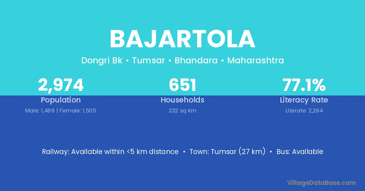Tumsar (27 km) is the nearest town to Bajartola village for major economic activities and is located approximately 27 km away.