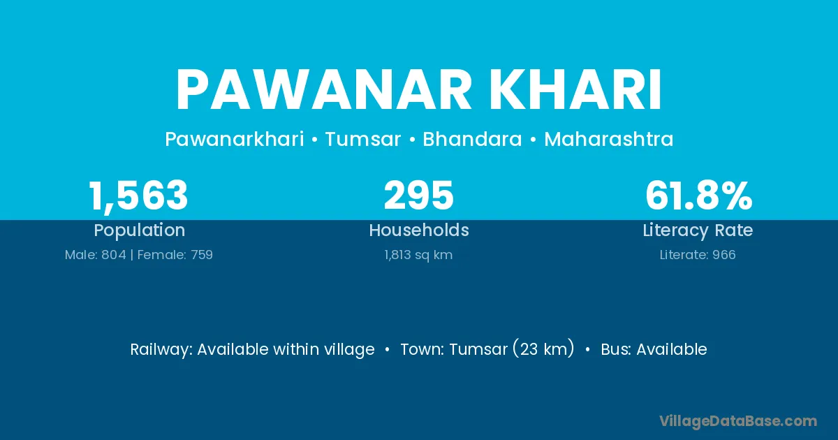 Tumsar (23 km) is the nearest town to Pawanar Khari village for major economic activities and is located approximately 23 km away.