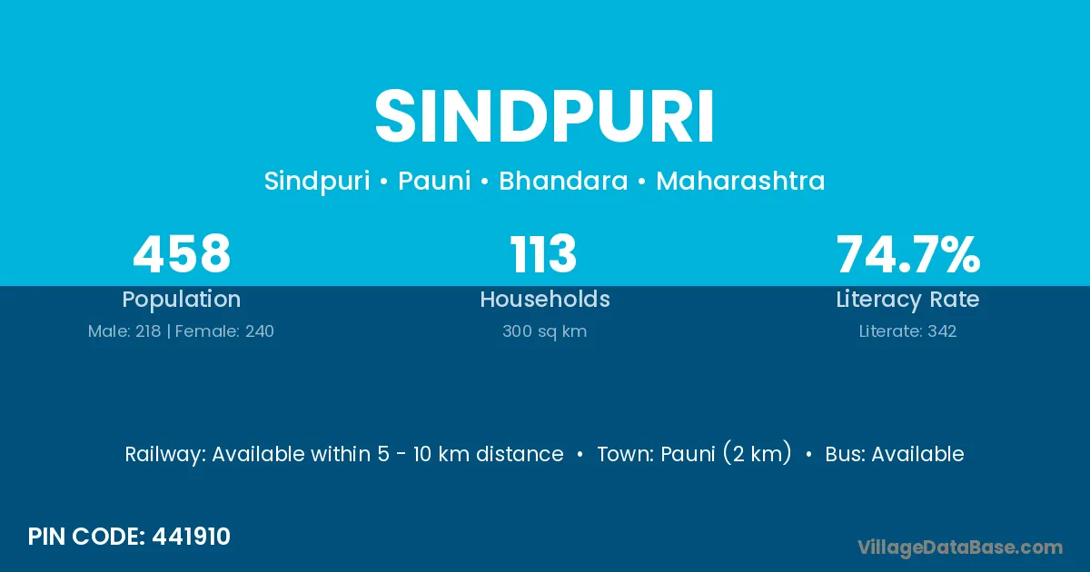 Tumsar (15 km) is the nearest town to Sindpuri village for major economic activities and is located approximately 15 km away.