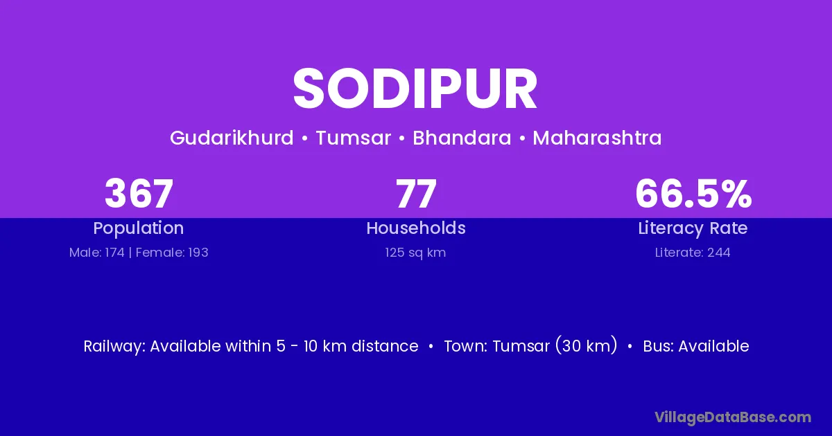 Tumsar (30 km) is the nearest town to Sodipur village for major economic activities and is located approximately 30 km away.