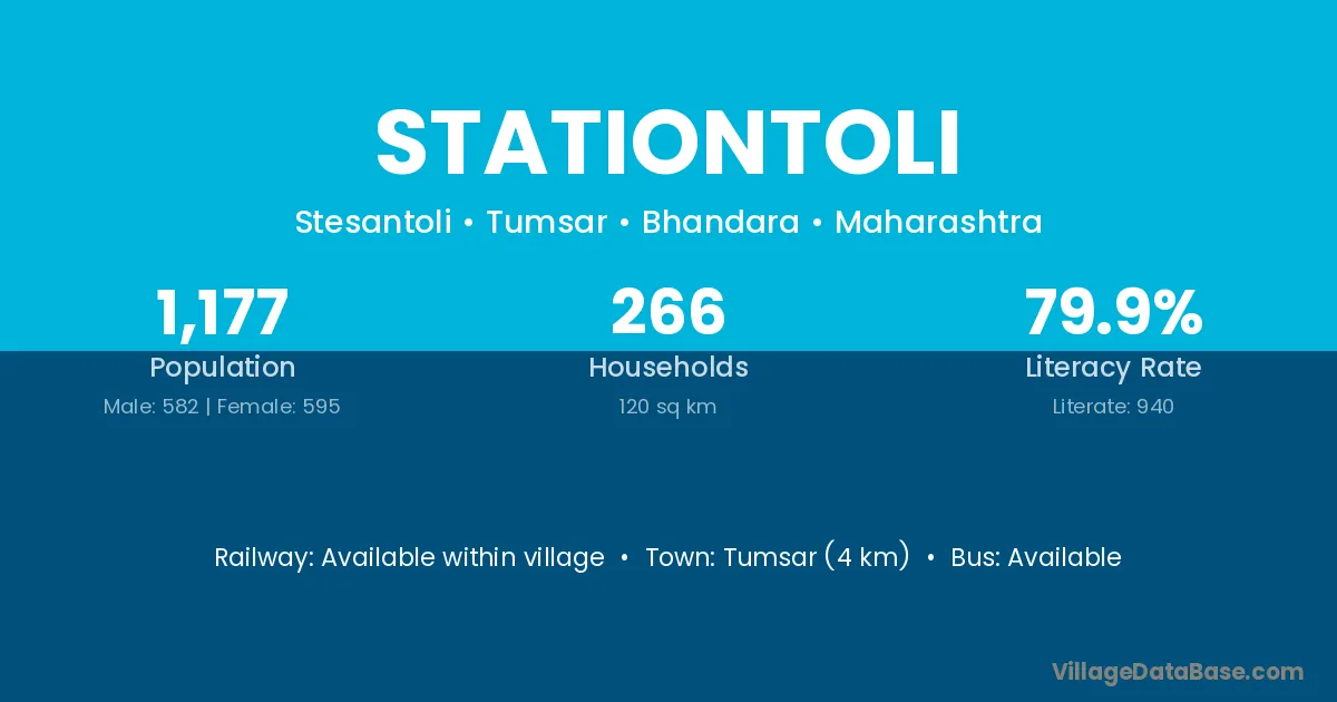 Stationtoli village has a total population of 1,177 people, of which 582 are males and 595 are females.