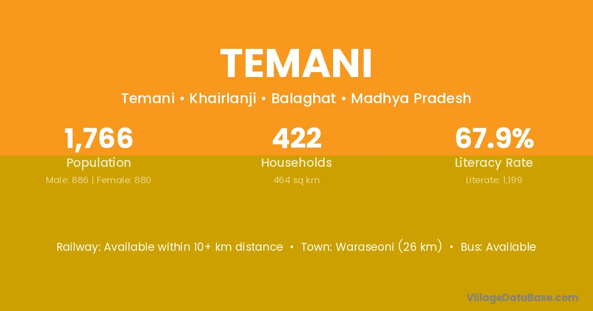 Tumsar (22 km) is the nearest town to Temani village for major economic activities and is located approximately 22 km away.