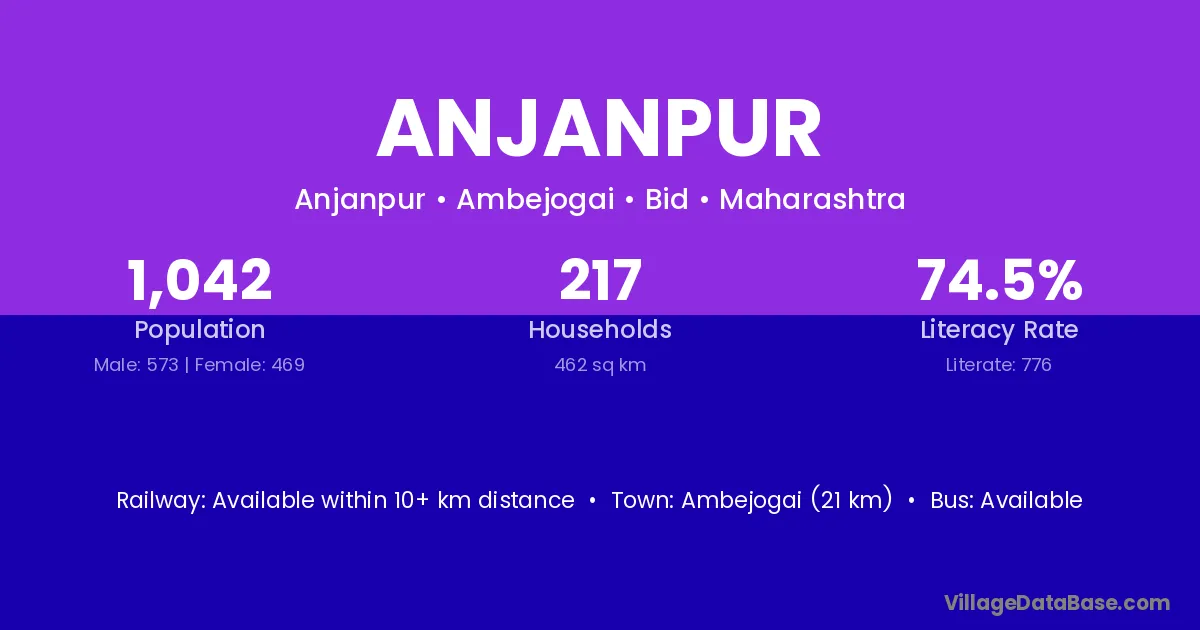 Ambejogai (21 km) is the nearest town to Anjanpur village for major economic activities and is located approximately 21 km away.