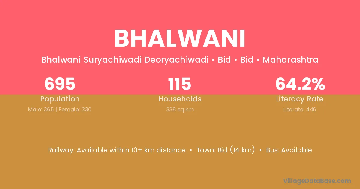 Bid (14 km) is the nearest town to Bhalwani village for major economic activities and is located approximately 14 km away.