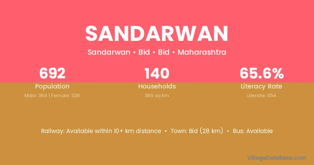 Bid (28 km) is the nearest town to Sandarwan village for major economic activities and is located approximately 28 km away.
