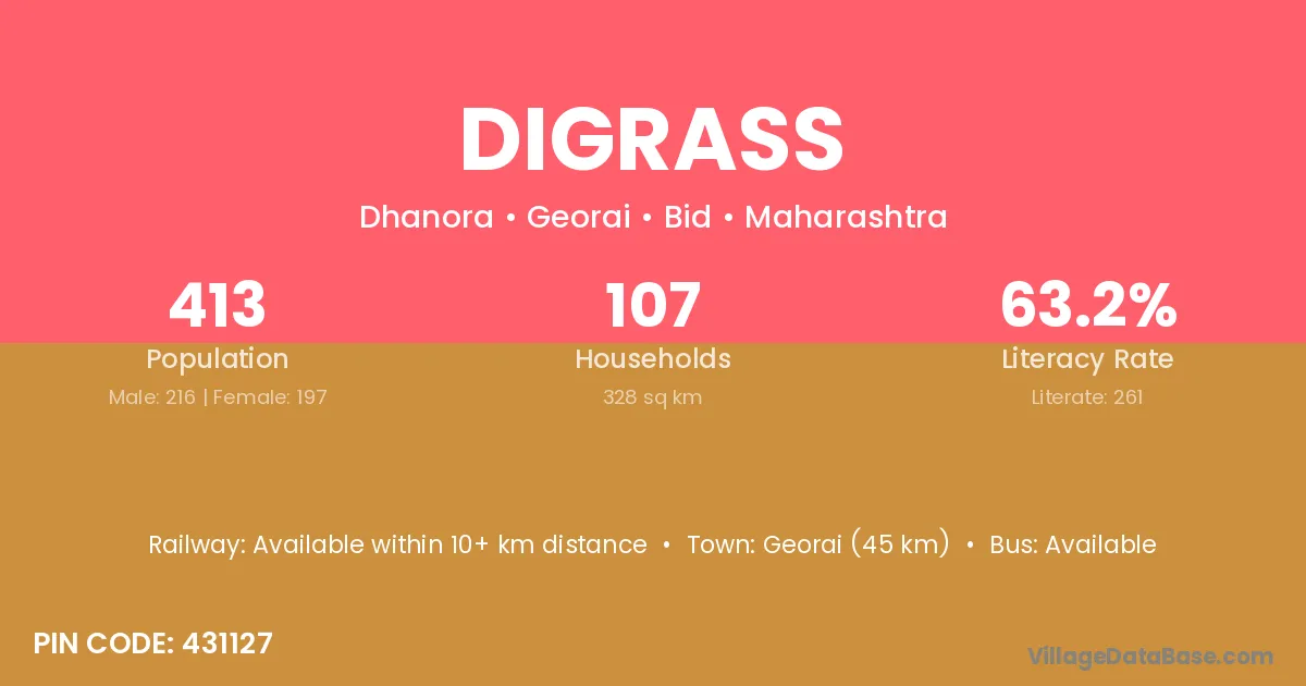 Georai (45 km) is the nearest town to Digrass village for major economic activities and is located approximately 45 km away.