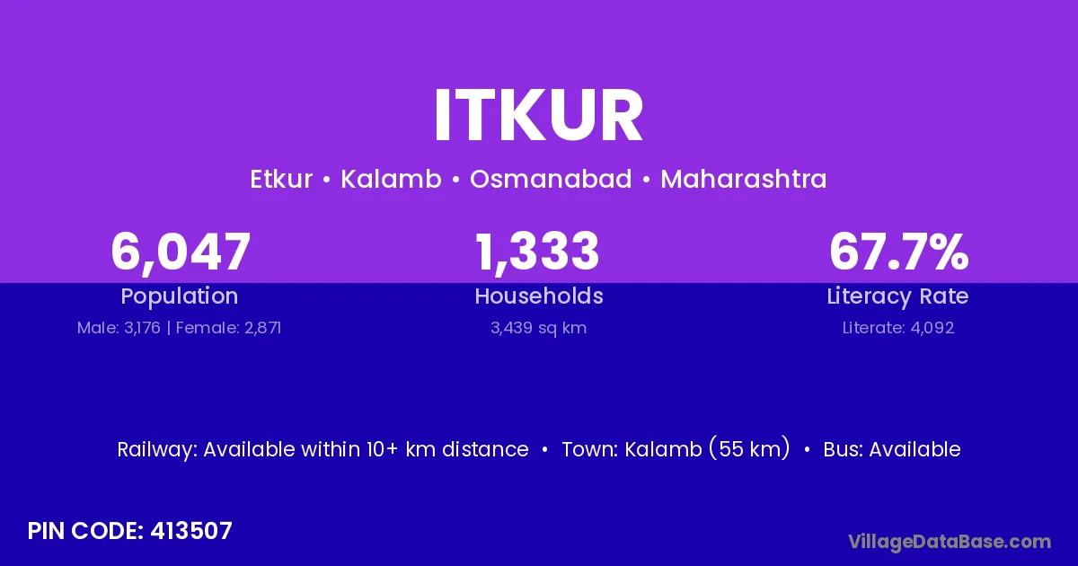 Georai (21 km) is the nearest town to Itkur village for major economic activities and is located approximately 21 km away.