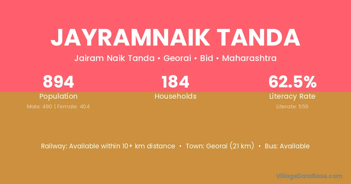 Georai (21 km) is the nearest town to Jayramnaik Tanda village for major economic activities and is located approximately 21 km away.