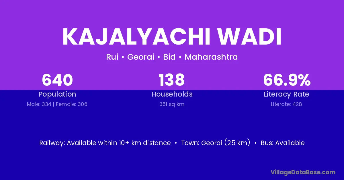 Georai (25 km) is the nearest town to Kajalyachi Wadi village for major economic activities and is located approximately 25 km away.