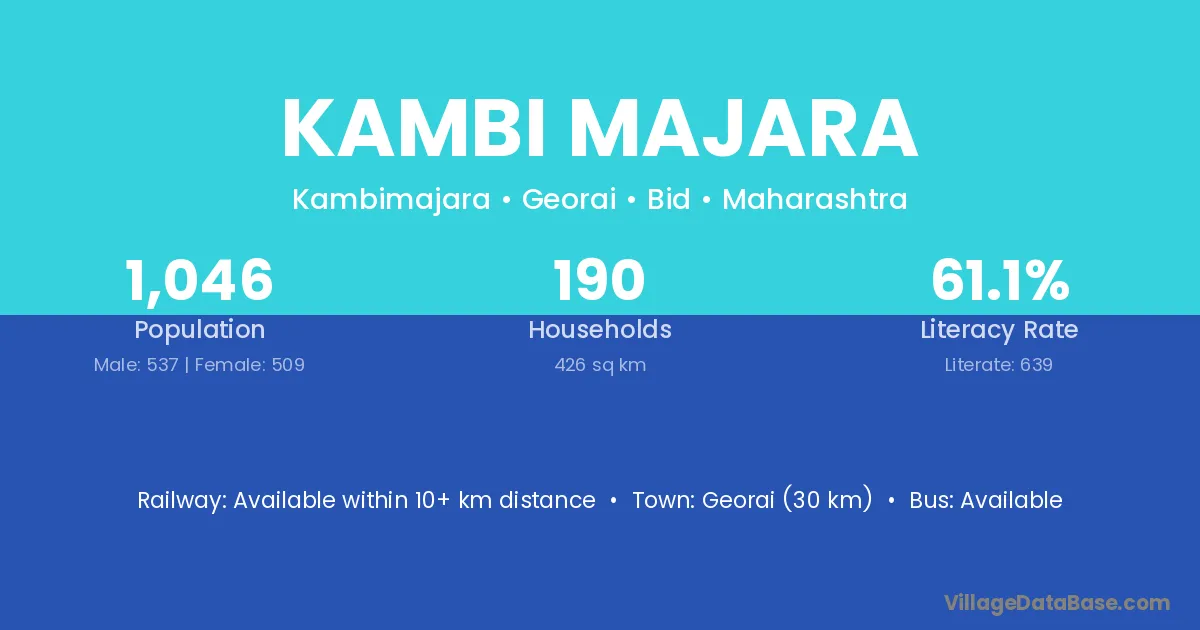 Georai (30 km) is the nearest town to Kambi Majara village for major economic activities and is located approximately 30 km away.