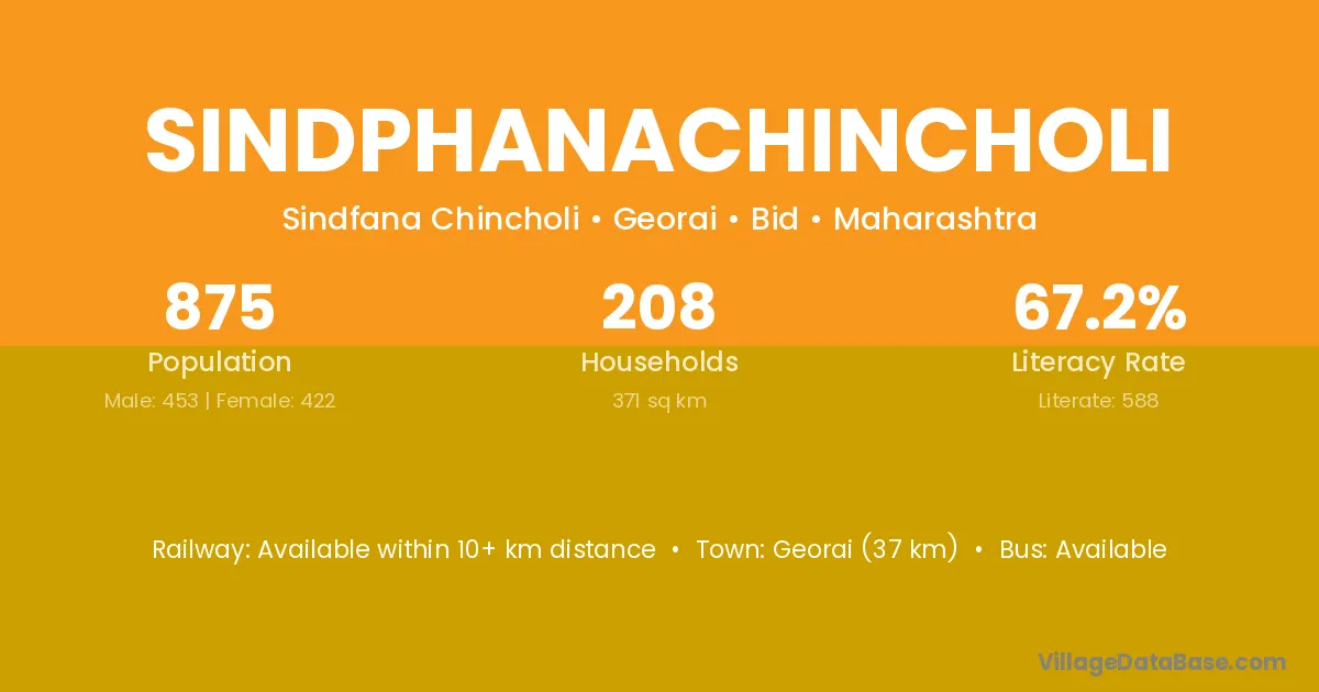 Georai (37 km) is the nearest town to Sindphanachincholi village for major economic activities and is located approximately 37 km away.