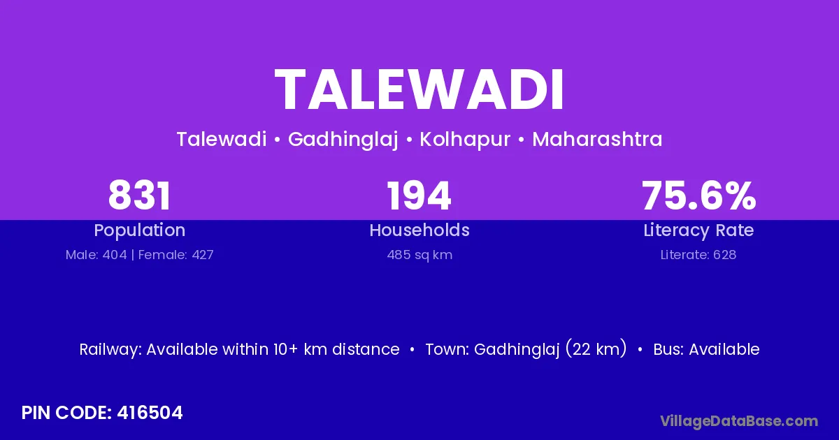 Talewadi village has a total population of 1,194 people, of which 629 are males and 565 are females.