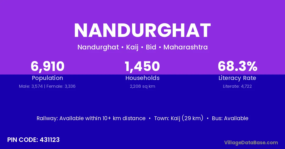 Kaij (29 km) is the nearest town to Nandurghat village for major economic activities and is located approximately 29 km away.