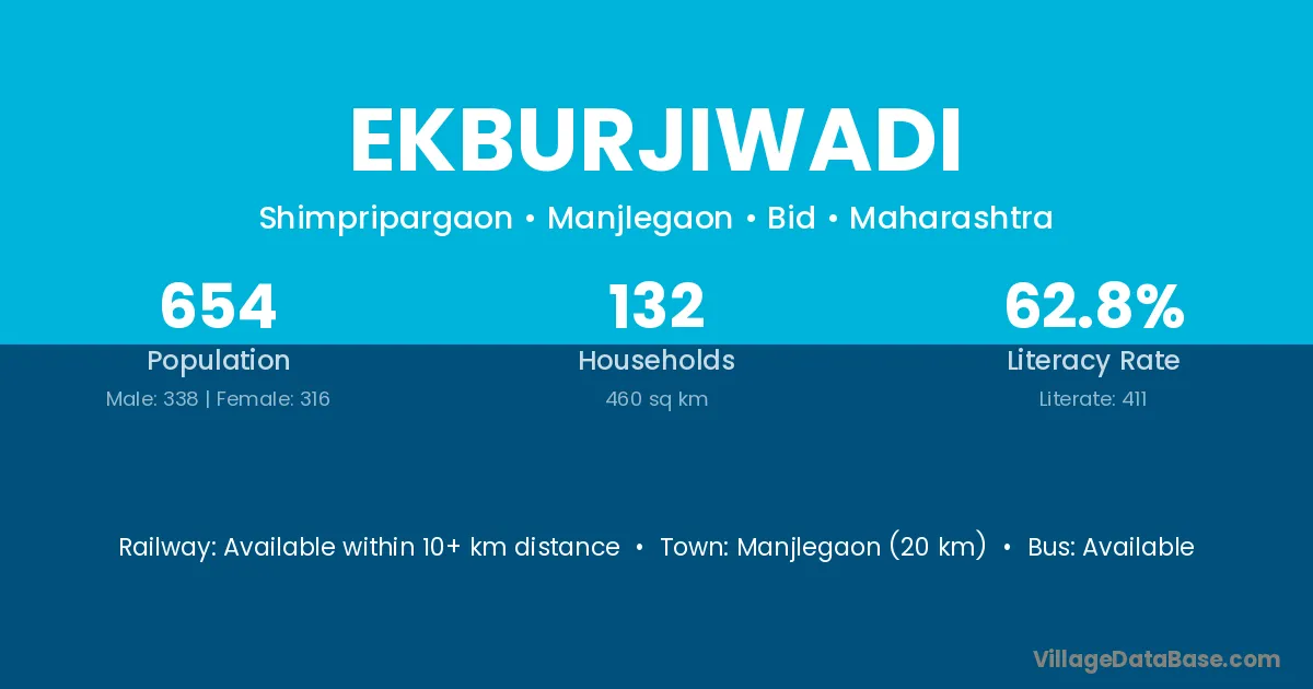 Manjlegaon (20 km) is the nearest town to Ekburjiwadi village for major economic activities and is located approximately 20 km away.