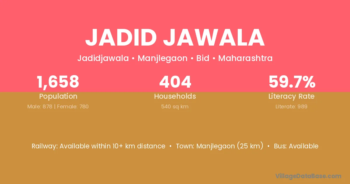 Manjlegaon (25 km) is the nearest town to Jadid Jawala village for major economic activities and is located approximately 25 km away.