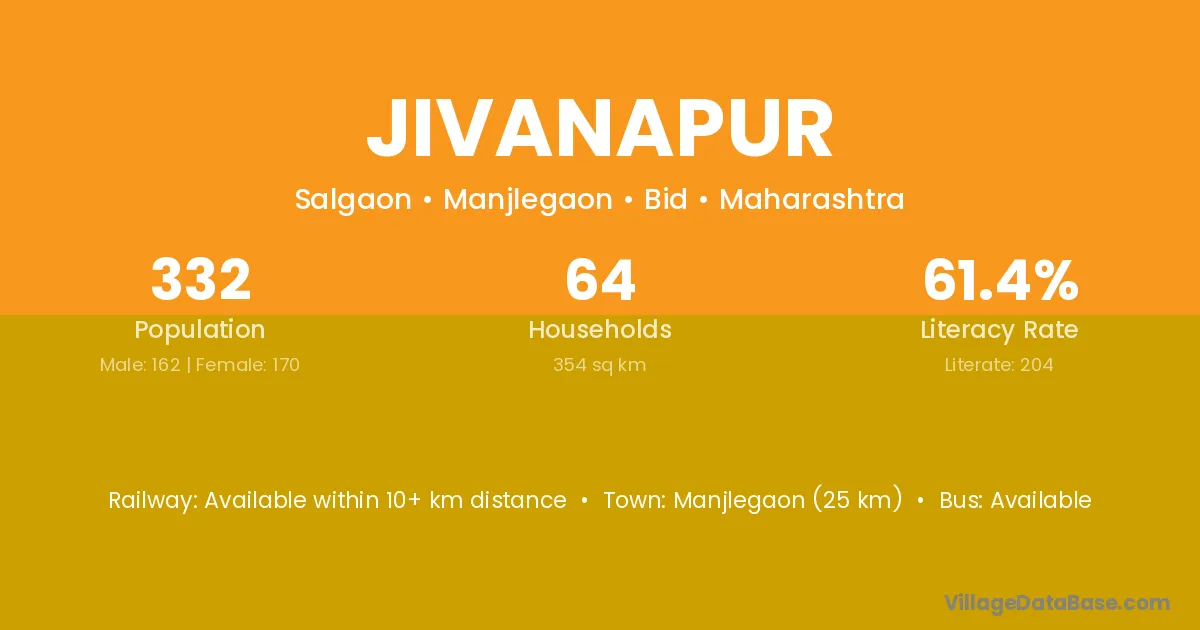 Manjlegaon (25 km) is the nearest town to Jivanapur village for major economic activities and is located approximately 25 km away.