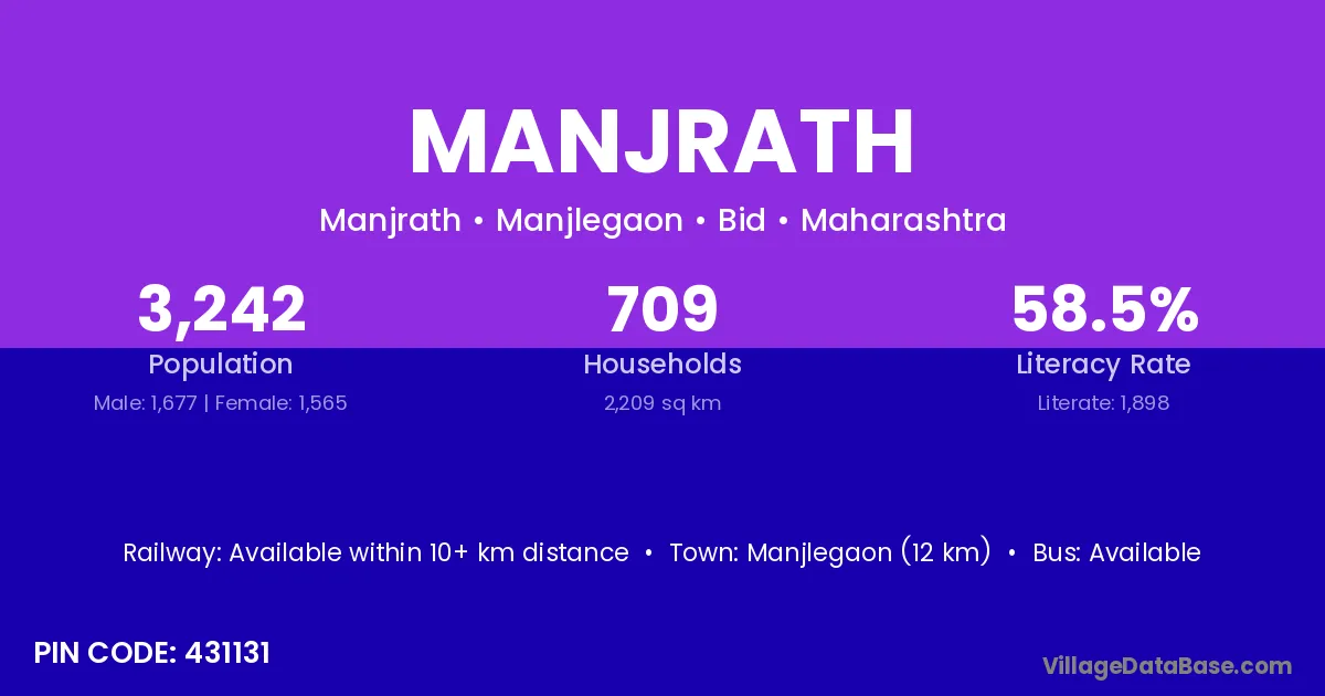 Manjlegaon (12 km) is the nearest town to Manjrath village for major economic activities and is located approximately 12 km away.