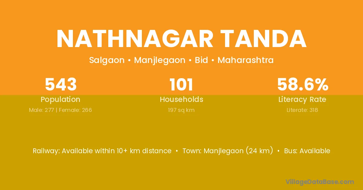 Manjlegaon (24 km) is the nearest town to Nathnagar Tanda village for major economic activities and is located approximately 24 km away.