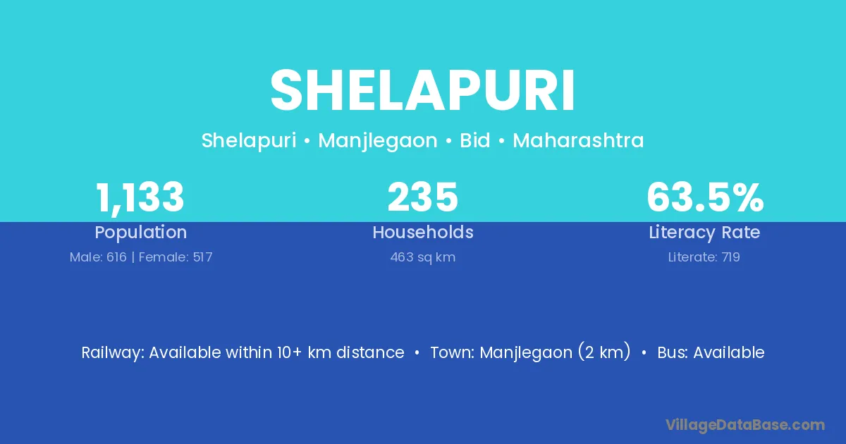 Manjlegaon (2 km) is the nearest town to Shelapuri village for major economic activities and is located approximately 2 km away.