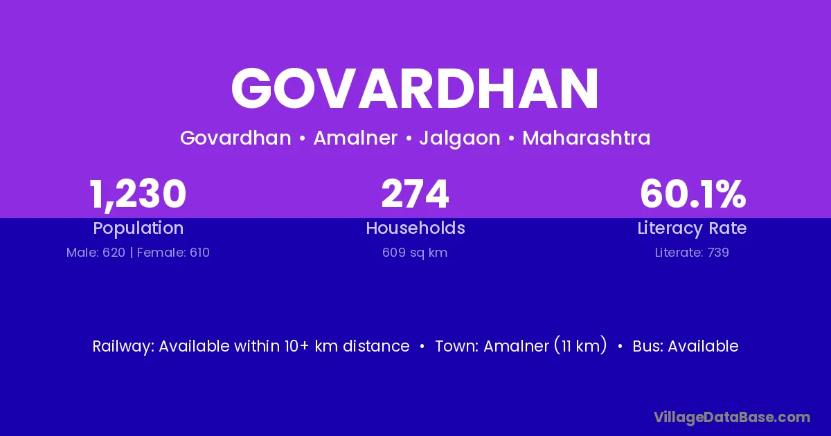 Parli (30 km) is the nearest town to Govardhan village for major economic activities and is located approximately 30 km away.