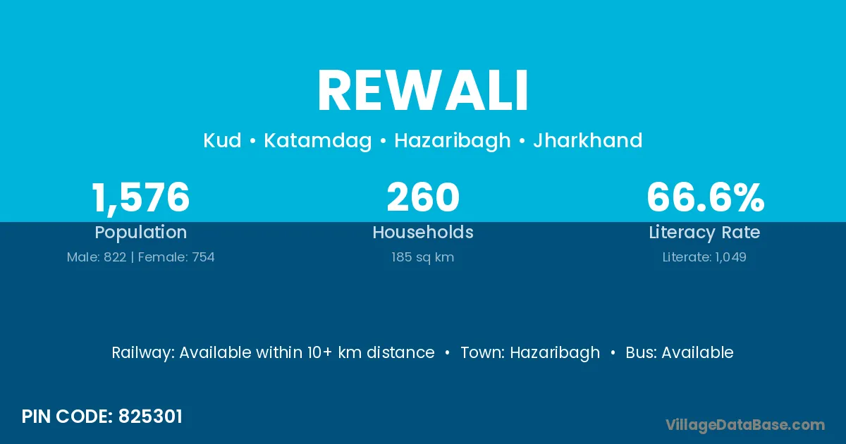Rewali village has a total population of 2,474 people, of which 1,277 are males and 1,197 are females.