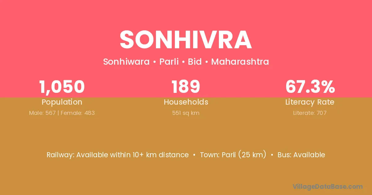 Parli (25 km) is the nearest town to Sonhivra village for major economic activities and is located approximately 25 km away.