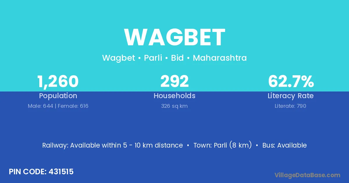 Parli (8 km) is the nearest town to Wagbet village for major economic activities and is located approximately 8 km away.
