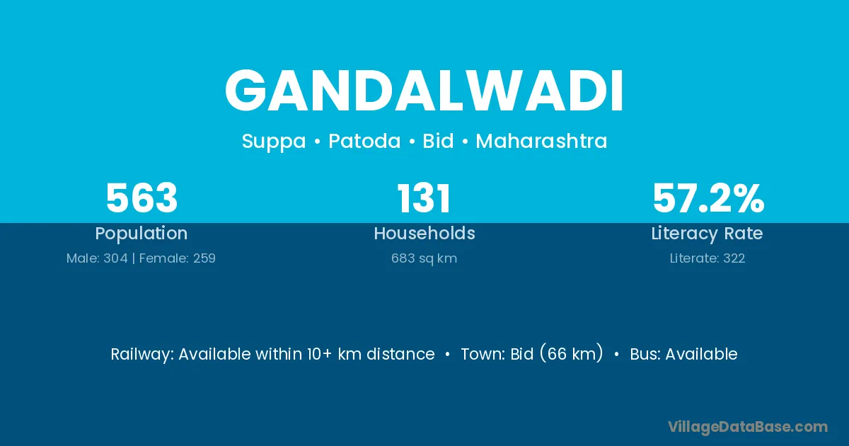 Gandalwadi village has a total population of 563 people, of which 304 are males and 259 are females.