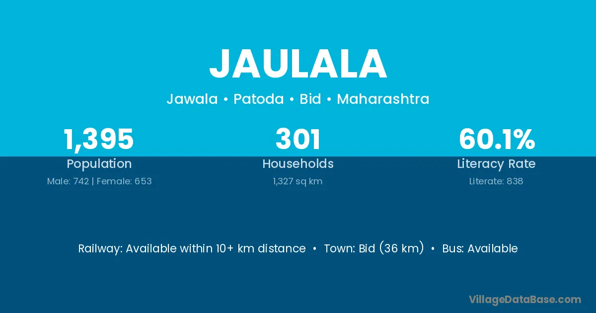 Bid (36 km) is the nearest town to Jaulala village for major economic activities and is located approximately 36 km away.