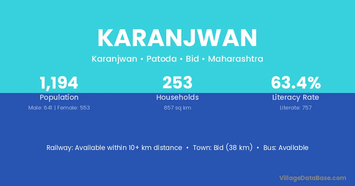 Bid (38 km) is the nearest town to Karanjwan village for major economic activities and is located approximately 38 km away.