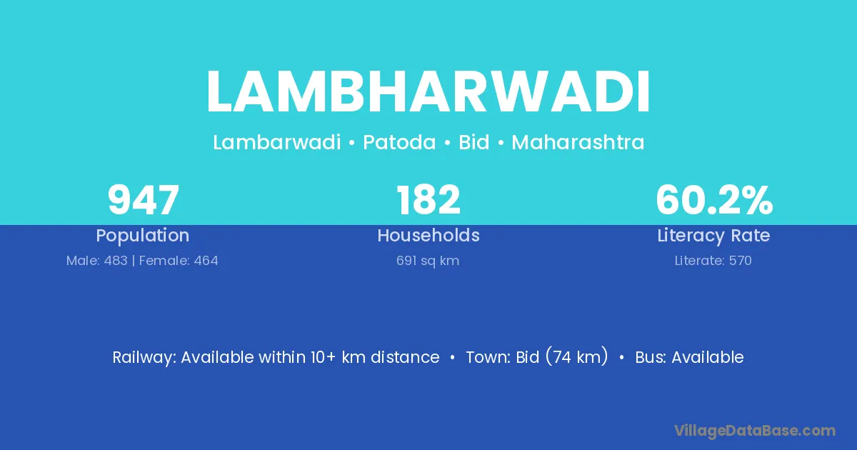 Lambharwadi village has a total population of 947 people, of which 483 are males and 464 are females.