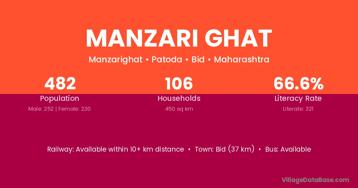 Manzari Ghat village has a total population of 482 people, of which 252 are males and 230 are females.