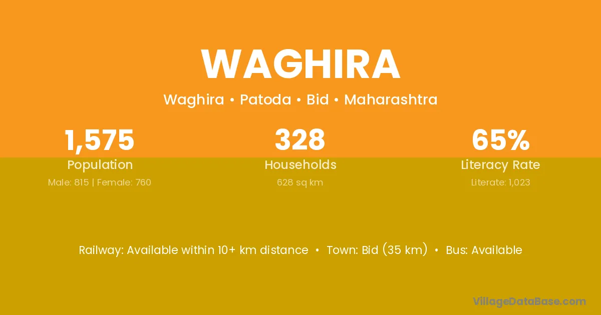 Bid (35 km) is the nearest town to Waghira village for major economic activities and is located approximately 35 km away.