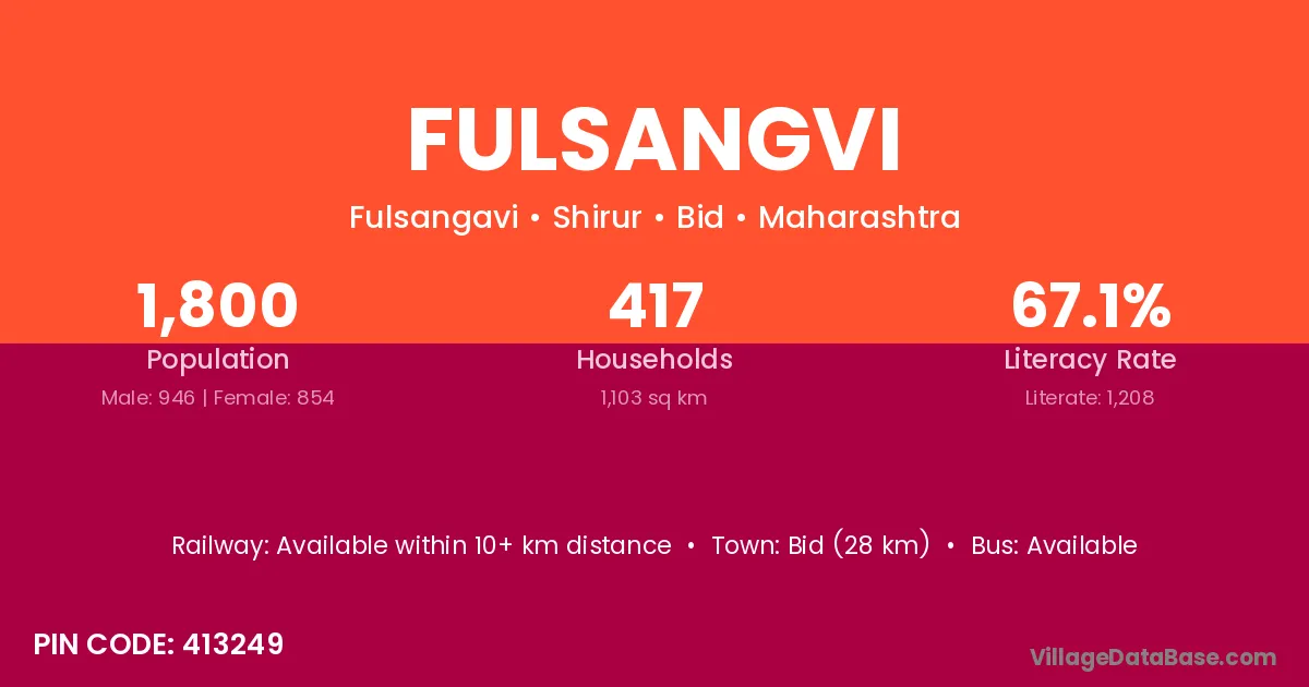 Bid (28 km) is the nearest town to Fulsangvi village for major economic activities and is located approximately 28 km away.